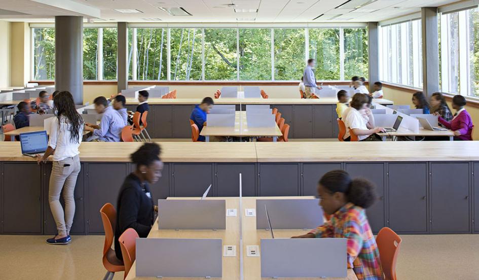 He knows because Fairchild Wheeler Interdistrict Magnet Campus is a $126 million behemoth, a huge civic project that has drawn on the brightest minds and latest thinking in education design in an effort to turn around the troubled Bridgeport public school district (the Global Report Card ranks its students in the 29th percentile in math and 30th percentile in reading). It's a brand-new (so new that the Google Map Earth view still shows a construction site) public high school that will recruit students from across the district, from the (relatively) wealthy suburbs to the poor urban areas. It's also a recent standout example of what could be the first major shift in classroom design since the one-room schoolhouse.